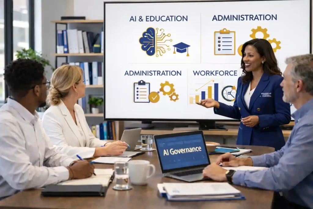 Educational institutions and workforce systems are adopting AI for learning platforms, administration, and workforce analytics. Governance ensures responsible AI use, data protection, and alignment with institutional policy frameworks.